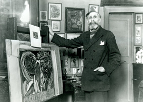 Indeed, in the aftermath of World War One, in 1919, painters like Maurice DENIS (1870-1943) and Georges DESVALLIERES (1861-1950) laid the foundations of the “Studios of Sacred Art”. Sharing the same sacred symbols ethos, they ranked with Georges ROUAULT (1871-1958), painter and engraver, a pupil of Gustave MOREAU.